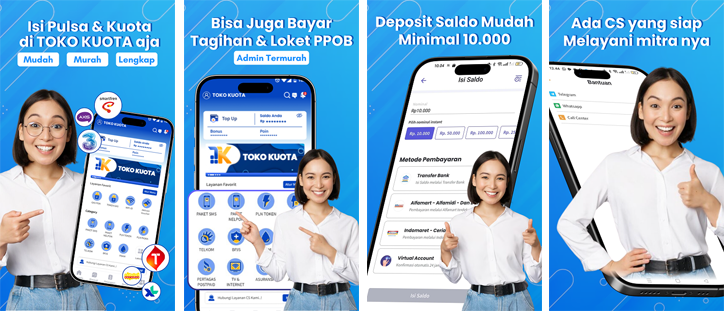 Ini adalah aplikasi mobile gratis untuk member-member TOKO PULSA KUOTA, di mana pun berada. Aplikasi ini memudahkan Anda dalam melakukan berbagai transaksi: