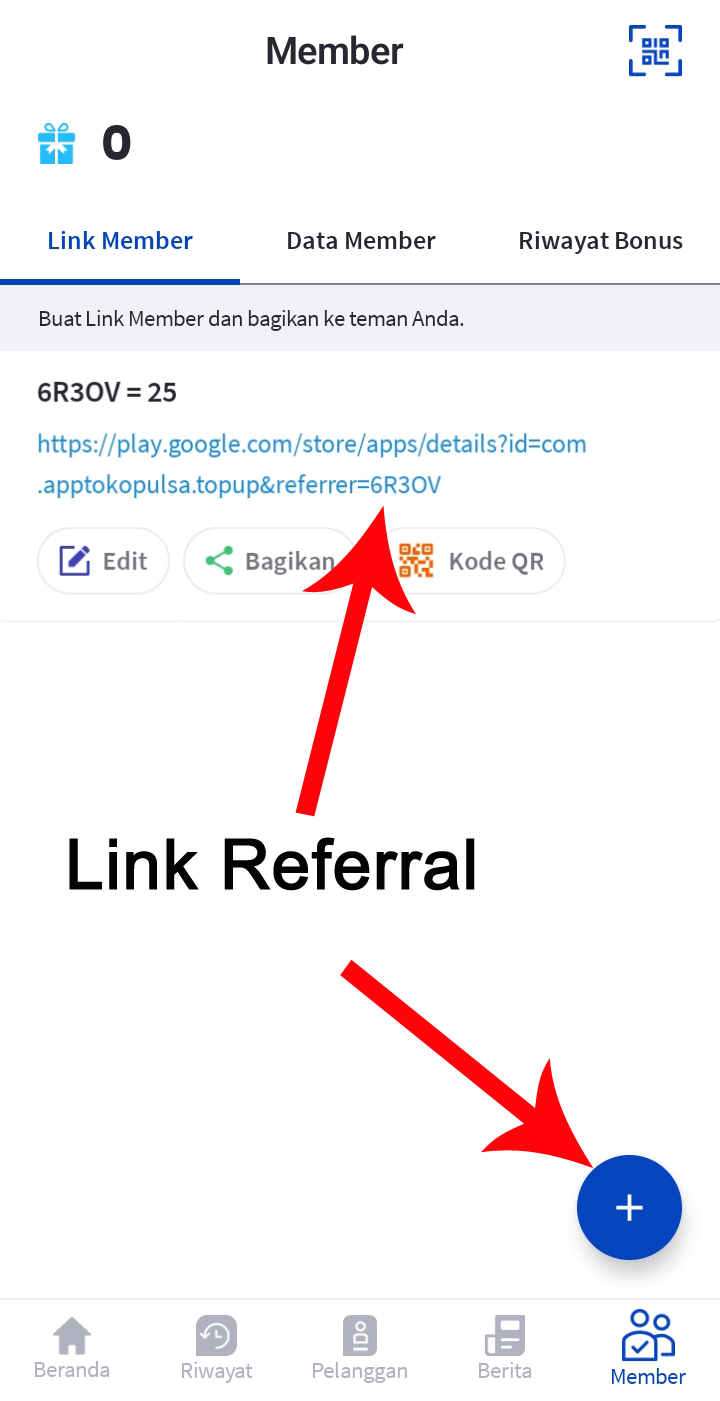 Link Referral adalah fitur untuk pendaftaran downline/member melalui link khusus yang ada di aplikasi server kami, sehingga memudahkan bagi para member untuk bisa mendapatkan penghasilan tambahan selain dari penjualan pulsa, yaitu dengan cara membagikan link referral anda melalui berbagai grup media sosial.